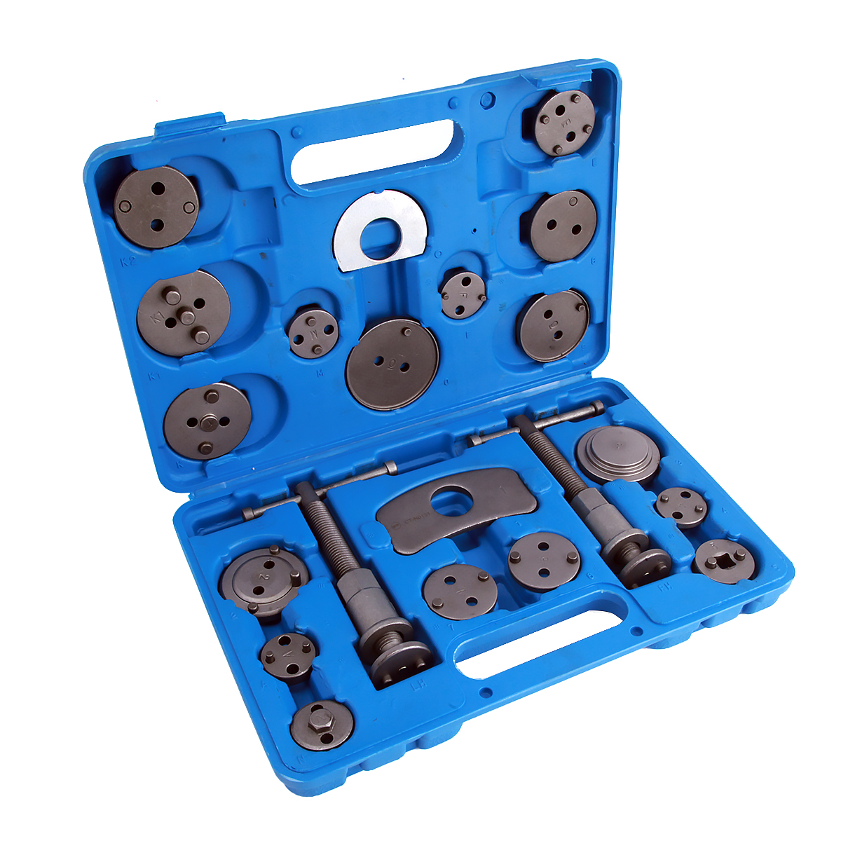 Набор для утапливания поршней тормозных цилиндров 21 предметов предназначен для замены колодок, ремонта суппортов и прокачки тормозной системы.
