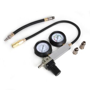 Пневмотестер предназначен для обнаружения утечек в цилиндро-поршневой группе двигателей внутреннего сгорания. По косвенным признакам позволяет определить следующие неисправности: Общий износ группы поршень+цилиндр, плотность прилегания клапанов или прогар клапанов, целостность прокладки ГБЦ, целостность клапана вентиляции и др. Прибор работает от пневмолинии. Имеет точную ручную регулировку давления подаваемого воздуха. Снабжен двумя манометрами: 1. Манометр давления воздуха в системе. 2. Манометр утечки по которому определяется наличие и степень утески. Подключение в пневмолинию через быстросъемный адаптер европейского типа.