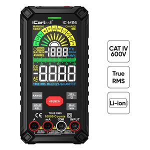 Интеллектуальный цифровой мультиметр IC-M116 с автоматическим выбором режима измерения, большим цветным дисплеем и широким набором дополнительных функций. Незаменим для решения задач по проверке, тестированию и диагностике электрооборудования. Имеет высокий рейтинг электробезопасности CAT III 1000V, CAT IV 600V и диапазон измерения силы тока до 10А. В комплект входят высококачественные мягкие и гибкие щупы, термопара и оригинальный защитный чехол.