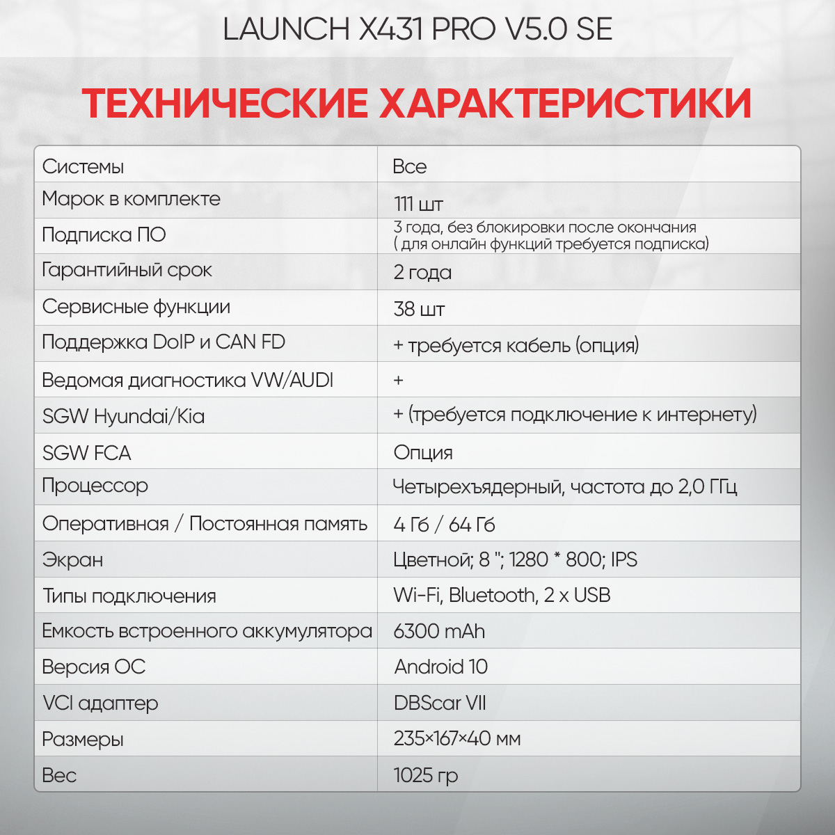 Основные отличия диагностического сканера Launch X431 PRO v5.0 SE