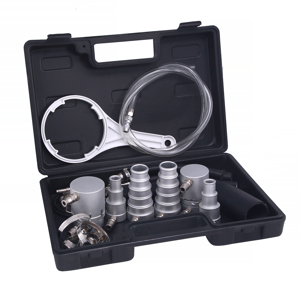 - Полная комплектация для работы без лишних затрат. В комплект входят все необходимые адаптеры, а также емкости по 20 литров для новой и отработанной жидкости, что делает процесс замены антифриза максимально удобным и гигиеничным.