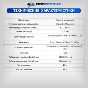 При обслуживании системы охлаждения важно не только заменить антифриз, но и сделать это правильно, избегая образования воздушных пробок и рисков для двигателя. Установка для замены антифриза ODA-4010 от ODA-сервис разработана специально для безопасной, быстрой и удобной смены охлаждающей жидкости. Это идеальное решение как для автосервисов, так и для автовладельцев, заботящихся о техническом состоянии своего автомобиля.