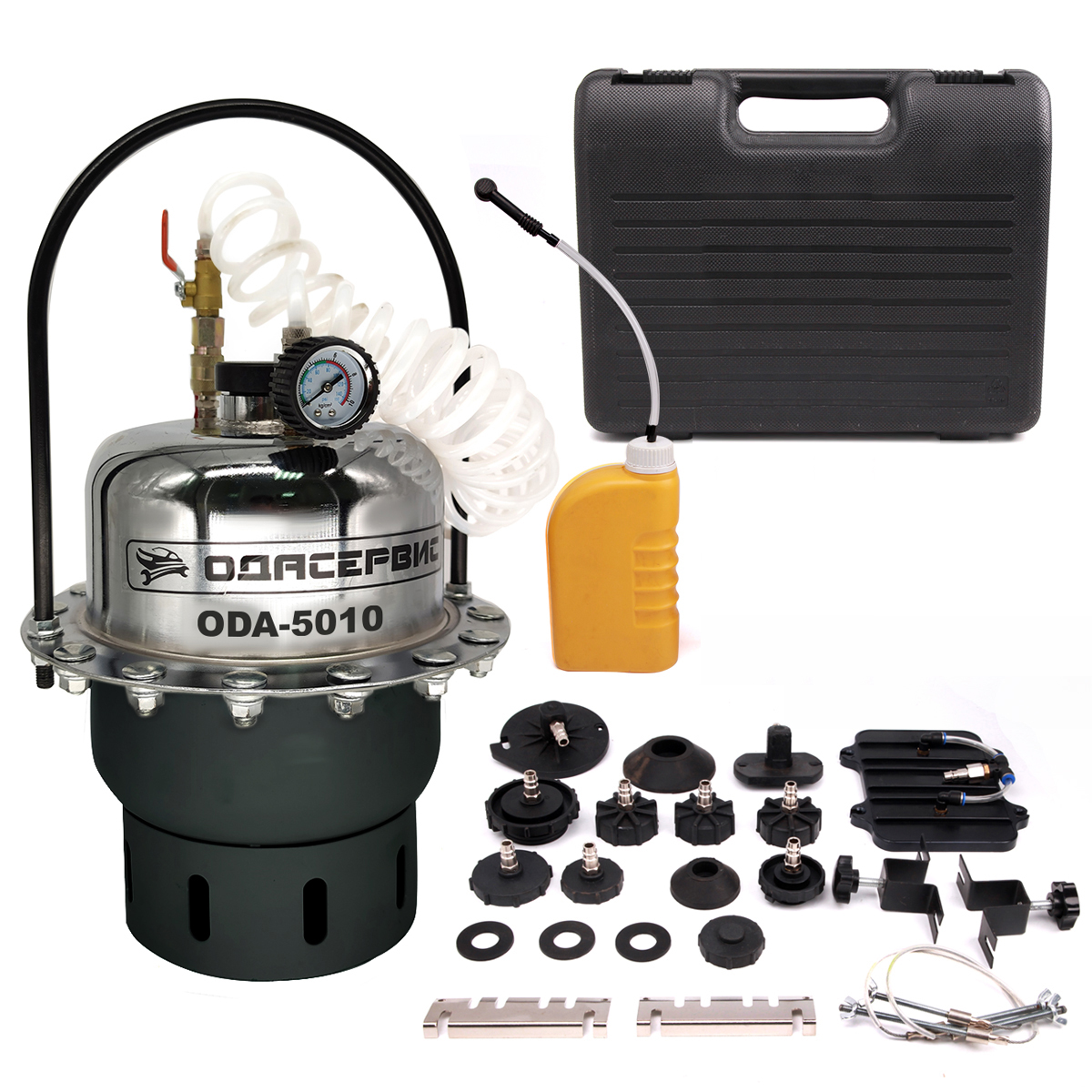 Установка ODA-5010 используется для замены жидкости в гидравлических приводах сцепления и в тормозных гидравлических системах большинства марок автомобилей. Станция позволяет специалисту качественно произвести прокачку тормозной системы и системы сцепления за очень короткое время. Подходит для всех легковых и грузовых автомобилей, включая агрегаты с ABS и контролем тормозной системы.