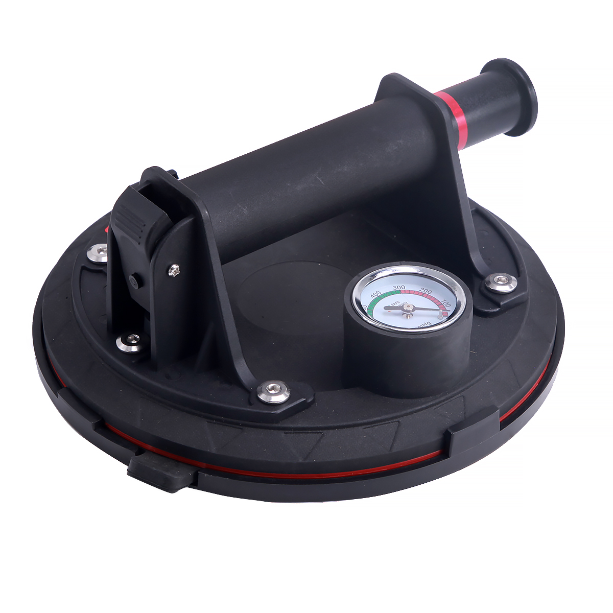 Присоска с ручной помпой и манометром TC-F160 – подходит для переноски всех материалов с плоской и не шероховатой поверхностью как малых, так и больших размеров. С помощью данной присоски можно осуществлять переноску и укладку стекла, зеркала, ламината, керамогранита, дерева, металла. Для быстрой разгерметизации применяется кнопка сброса вакуума, также расположенная в ручке присоски либо специальное ушко, расположенное на чаше присоски. Максимальная нагрузка (вертикальная) 135 кг. Максимальная нагрузка (горизонтальная) 160 кг. Присоска TC-F160 обеспечивает надежную переноску, имеет крепкую ручку с противоскользящим покрытием, поставляется вместе с пластиковым противоскользящим футляром.