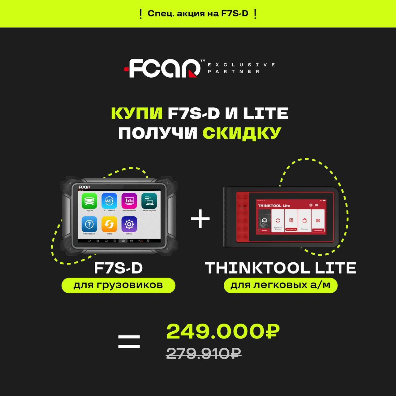 При одновременной покупке FCAR F7S-D (сканер для грузовиков и спецтехники) и THINKTOOL LITE (сканер для легковых а/м) получите СКИДКУ 30.910 рублей!