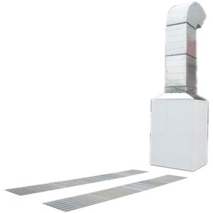 Наружные размеры длина-7,3; ширина – 3,5 м Внутренние размеры длина – 6,0; ширина – 3,5 м Воздухообмен 15000 м 3 / час Вытяжной вентилятор мощность 5.5 кВт Система фильтров напольный фильтр: степень фильтрации – 95% Напольные решетки Два ряда. Размеры 0,75м Х 5,0м.Максимальная нагрузка – 600 кг на колесо Питание Электрическая трехфазная сеть напряжением 380 В, 6 кВт – 26А